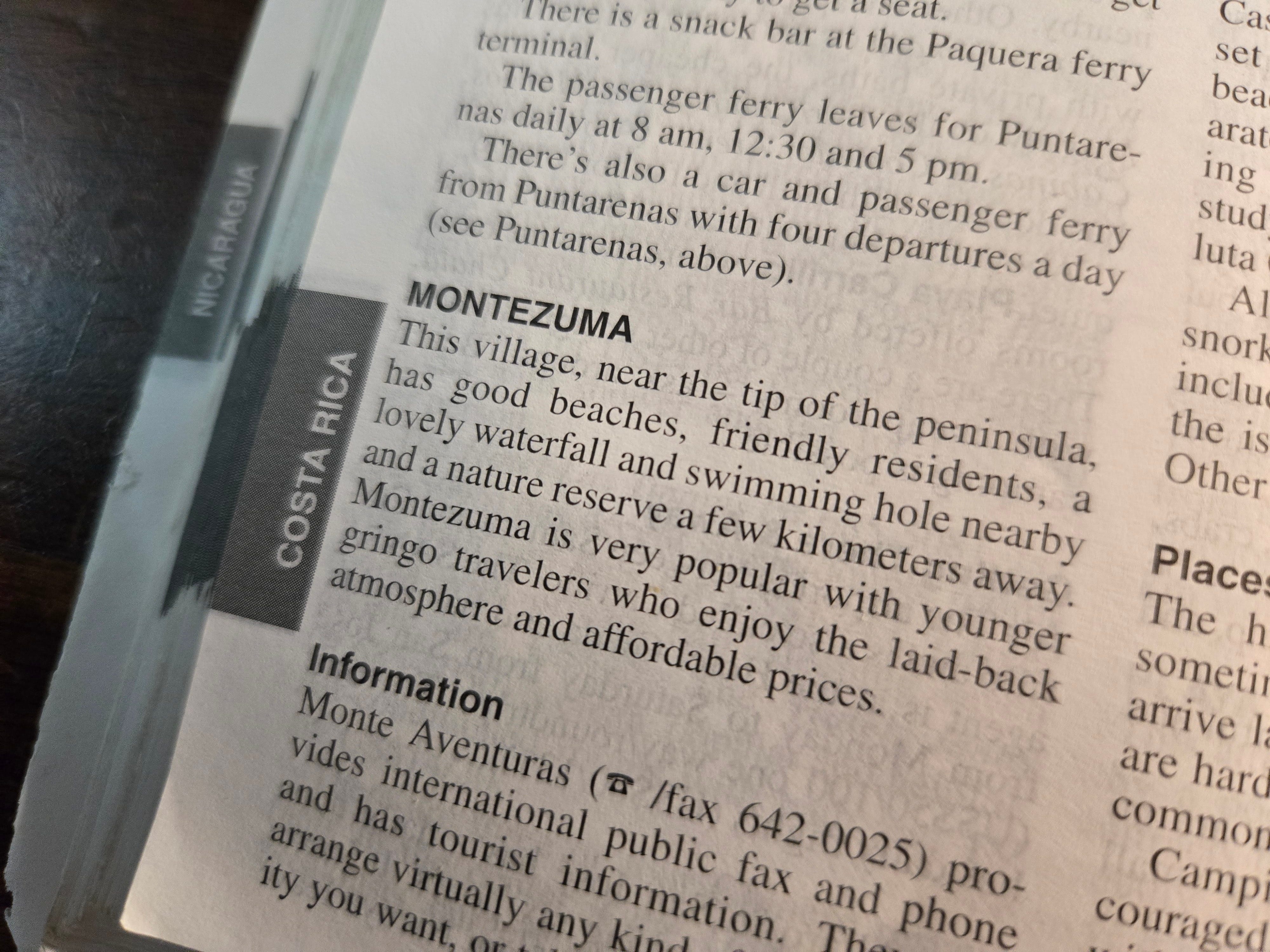 I remember reading about Montezuma in my Lonely Planet guidebook. There was barely a mention of the place. While Jaco, Tamarindo, and Puerto Viejo had several pages each, Montezuma warranted little more than half a page. LP noted it for "good beaches, friendly residents" and said it was "very popular with gringos seeking affordable prices." It was also a little off-the-beaten path and an adventure to get to.